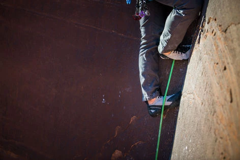 Whether teching your way up a run-out granite slab or hucking laps on the splitters at Indian Creek, the Aspect is an engineered trad climbing machine. Built with the highest grade European leather upper, the Aspects balance comfort with performance using innovative designs that subtly set it apart. Lace up a pair and you’ll notice that the leather upper slightly covers the laces on the outside of the foot—specifically designed for protection during abrasive jamming. The shoe’s tongue is made from our Engineered Knit Technology, which adds breathability and comfort. The knit also extends to the outside of the shoe to just under the rand line to offer extra padded protection for foot jams. The lateral stabilizer rands increase precision by keeping your foot from rolling when pressure is applied to the outside or inside edges. The Aspect’s stiff and durable rubber is unique in that it’s molded—inspired by the way we forge our carabiners—and not cut from one sheet of rubber. This is our engineered solution to optimize our shoe’s rubber and rands for weight, consistency and comfort. The Aspect’s medium-flex midsole adds support without sacrificing comfort. So next time you’re eyeing that trad line, consider the Aspects a part of your rack.