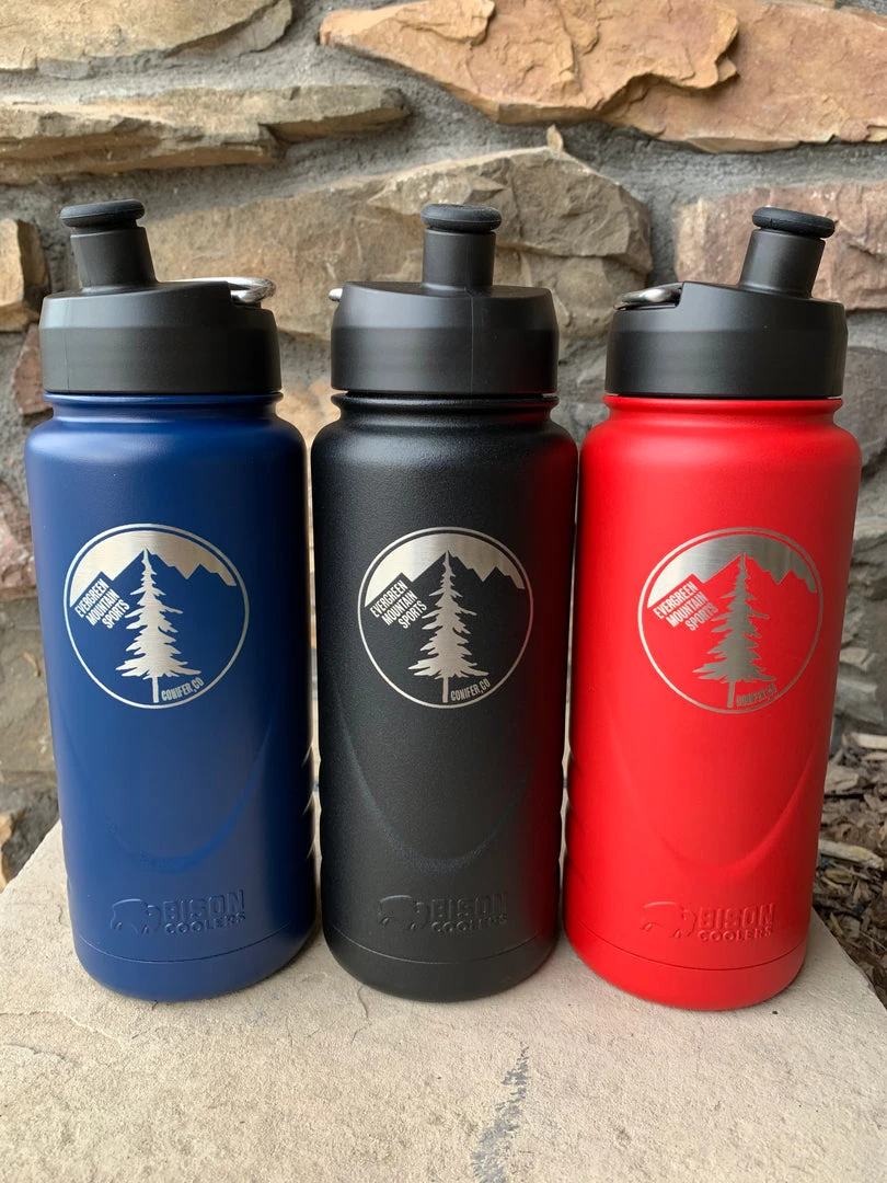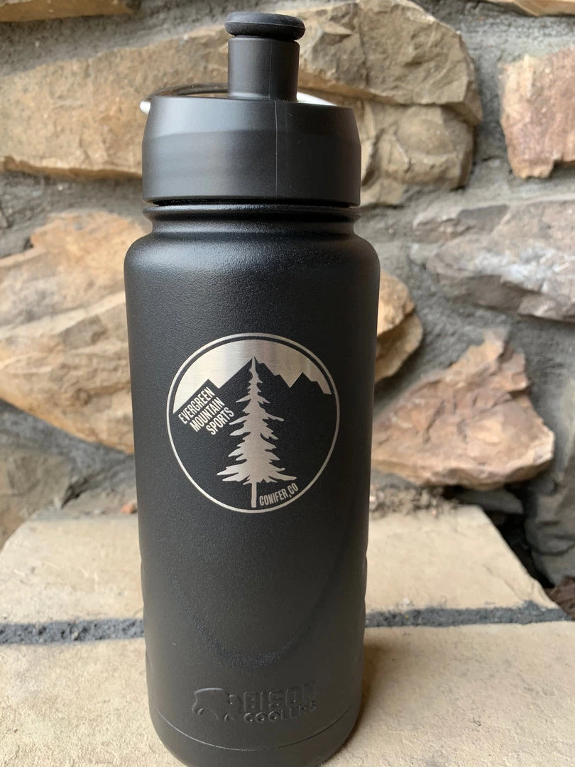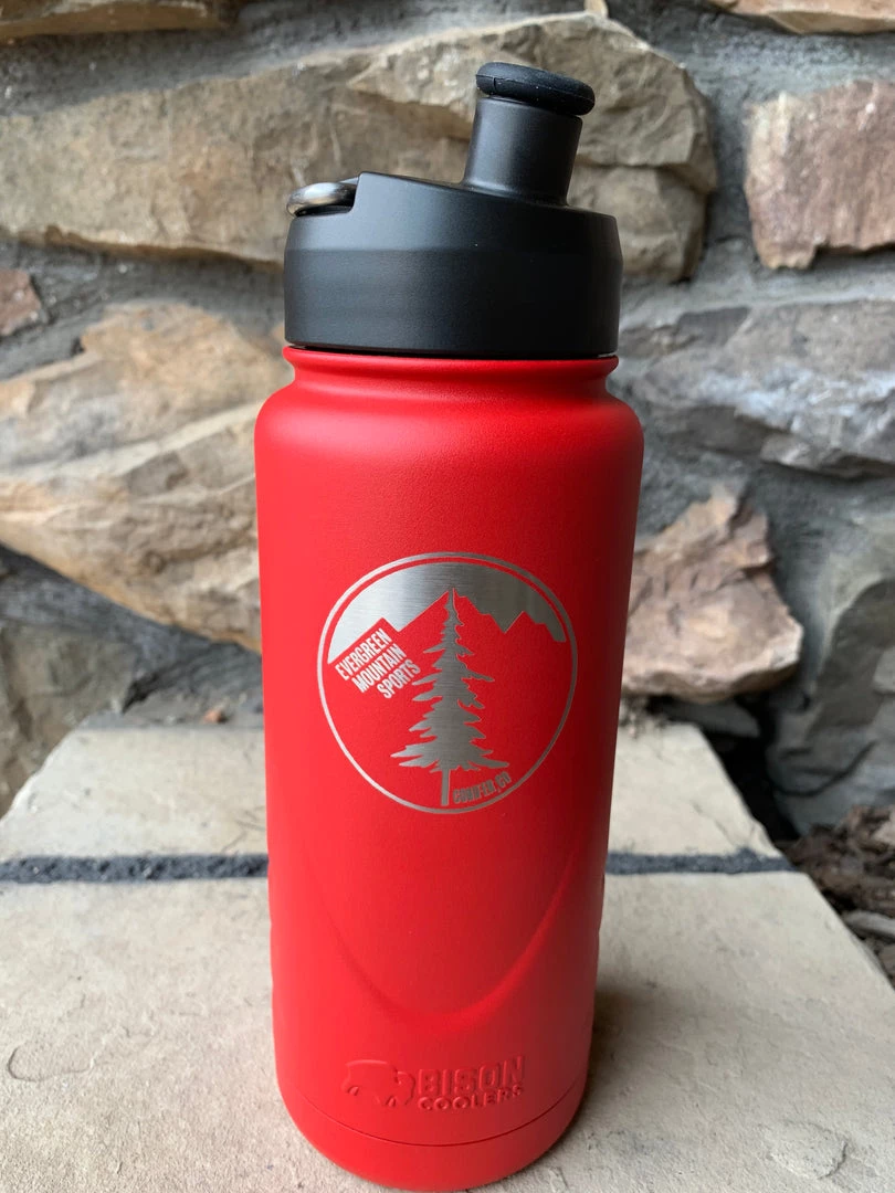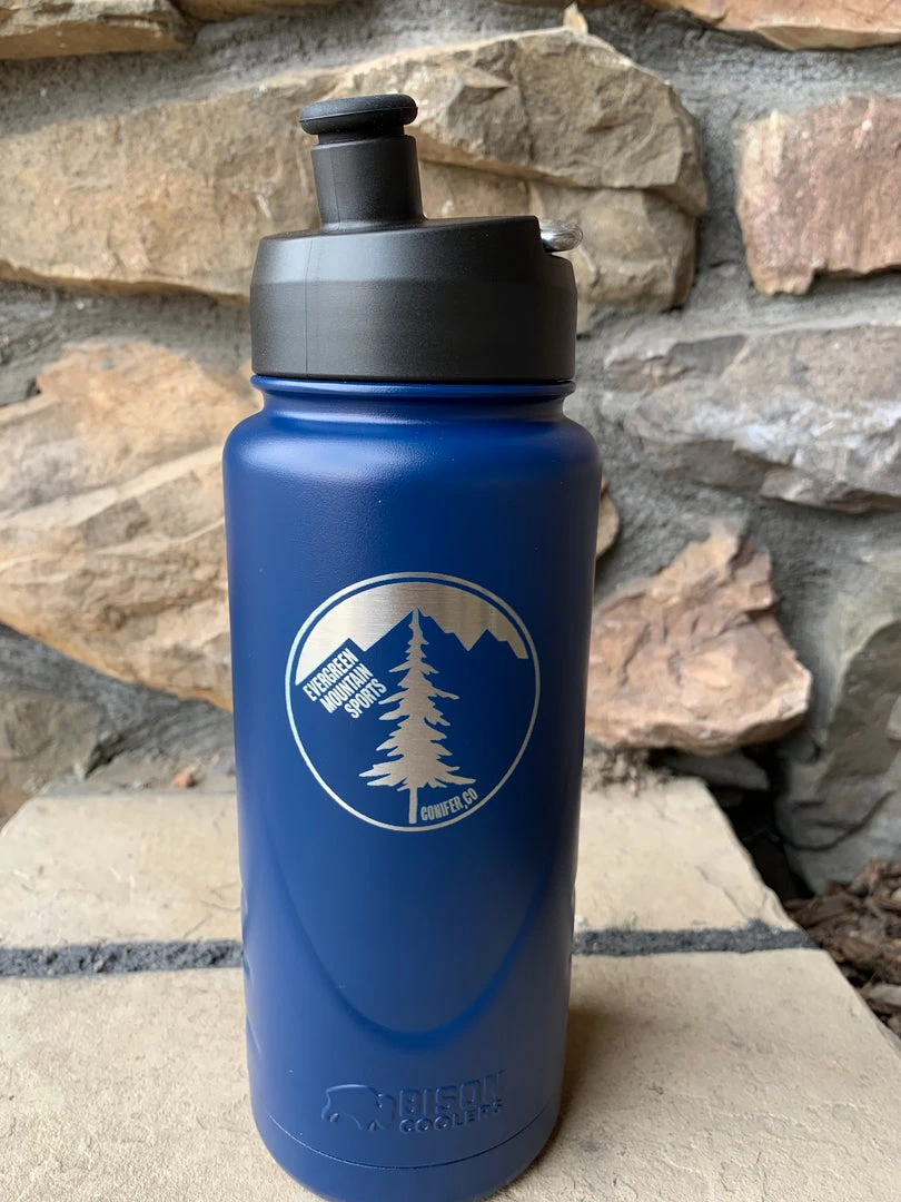 Evergreen Mountain Sports partnered with Bison Coolers to produce their signature shop water bottle. Here we have the 22oz insulated stainless steel water bottle for your outdoor adventure. Fill it with your favorite beverage and it will keep it hot or cold for you drinking pleasure. From the handy sport lid cap to the carrying loop for easy attachment to your carabiner, the sweat proof design is perfect for all of your adventures, far and near. Throw in the 5 year warranty, this is a perfect option for you!