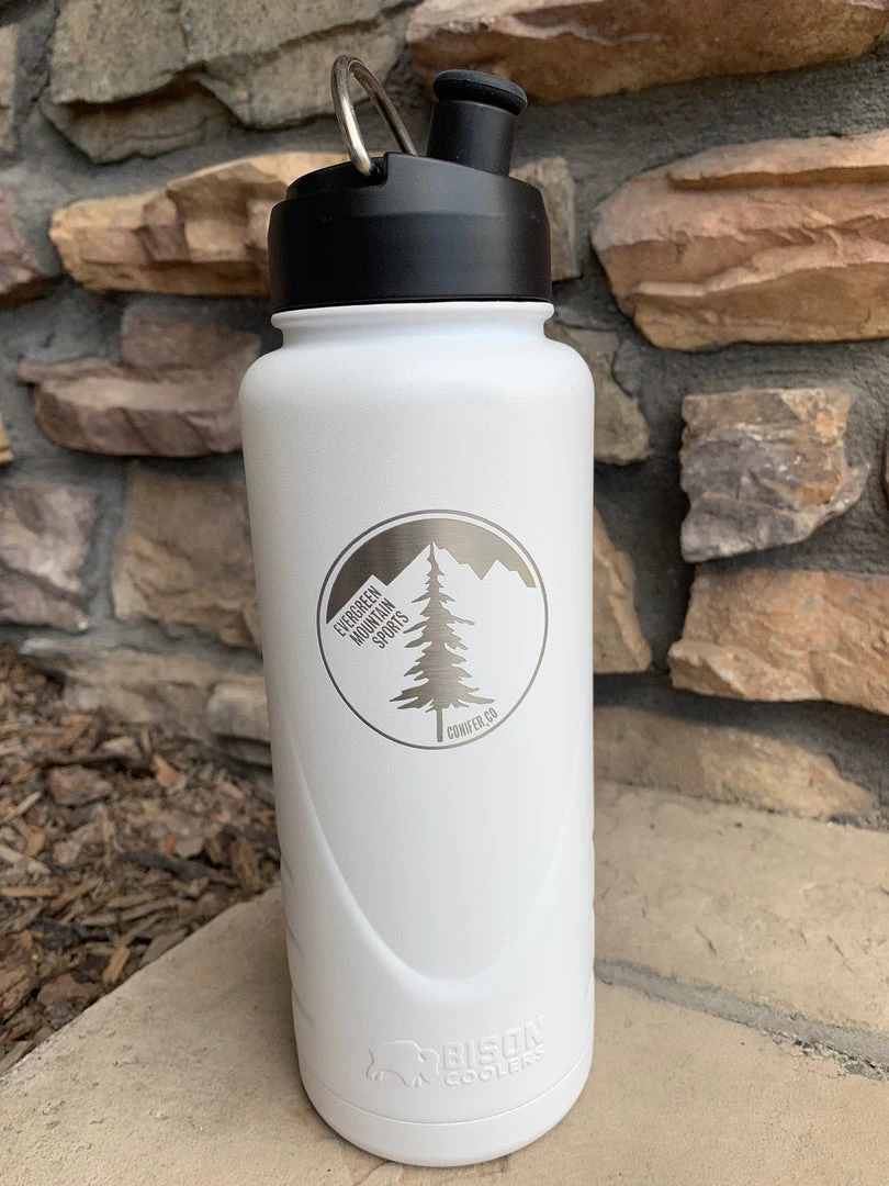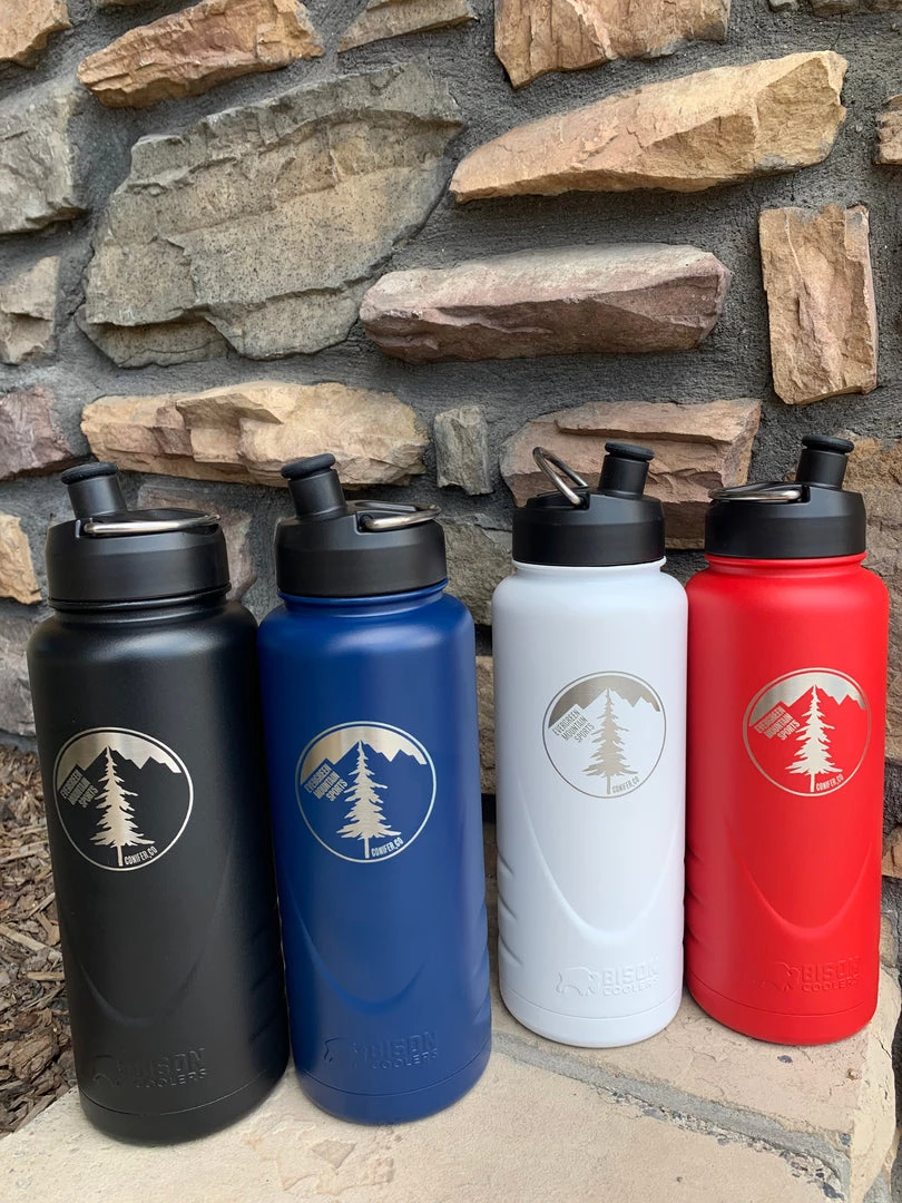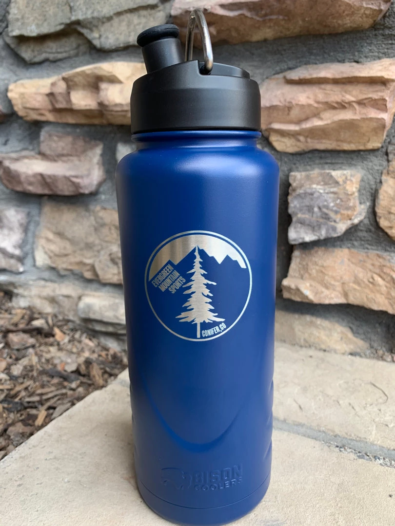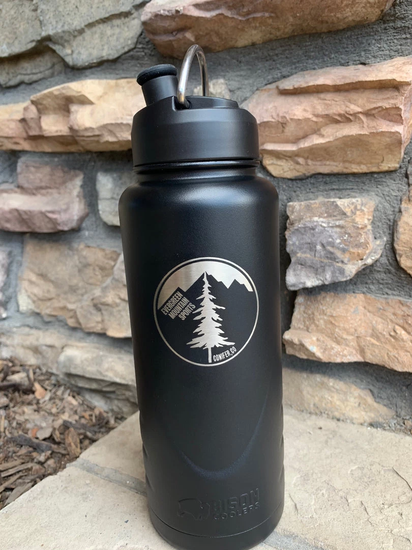 Evergreen Mountain Sports partnered with Bison Coolers to produce their signature shop water bottle. Here we have the 32oz insulated stainless steel water bottle for your outdoor adventure. Fill it with your favorite beverage and it will keep it hot or cold for your drinking pleasure. From the handy sport lid cap to the carrying loop for easy attachment to your carabiner, the sweat proof design is perfect for all of your adventures, far and near. Throw in the 5 year warranty, this is a perfect option for you!
