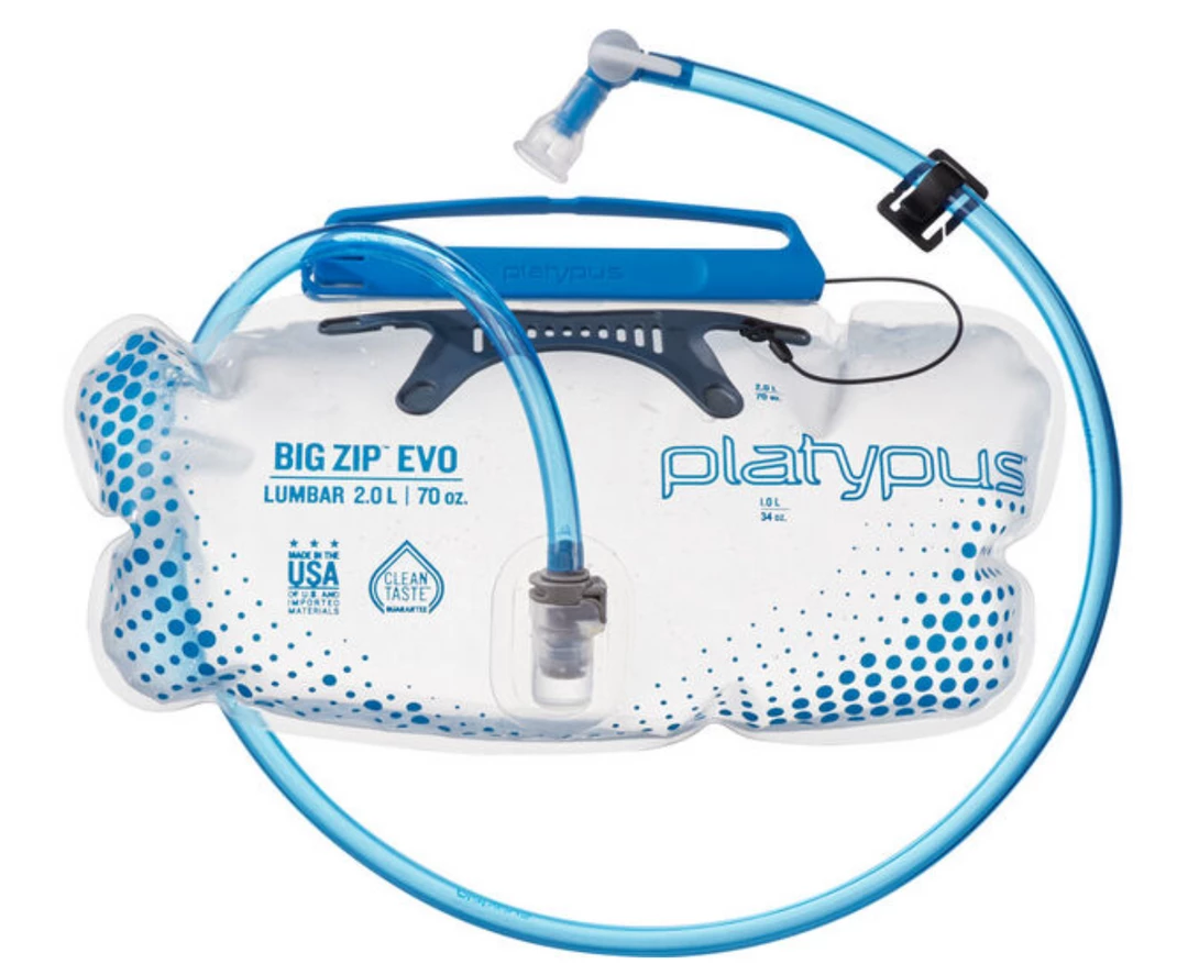 Introducing the Big Zip™ EVO—the latest evolution in taste-free hydration. The Big Zip EVO delivers a significantly higher flow rate than previous Platypus reservoirs and a host of new features, making it a great option for backpackers, hikers, and mountain bikers. Available in 1.5L, 2.0L, 3.0L and a Lumbar 2.0L.